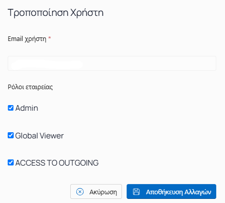 ACCESS TO OUTGOING: Όταν σε έναν χρήστη δίνουμε αυτό το δικαίωμα, μπορεί να έχει εικόνα των εξερχόμενων παραστατικών της εταιρείας.