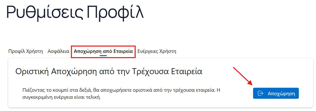 3. Επιλέξτε την επιλογή «Αποχώρηση από Εταιρεία».