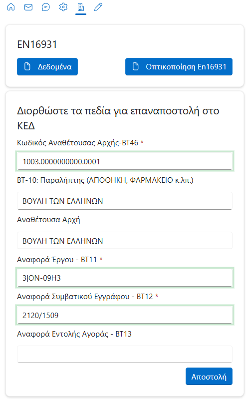 • Διορθώστε τα πεδία για επαναποστολή στο ΚΕΔ: Αυτή η λειτουργικότητα αφορά την δυνατότητα Soft Reject, δηλαδή απόρριψη ενός παραστατικού με την προοπτική διόρθωσης και επαναποστολής του, χωρίς να είναι απαραίτητη η έκδοση πιστωτικού και νέου χρεωστικού.