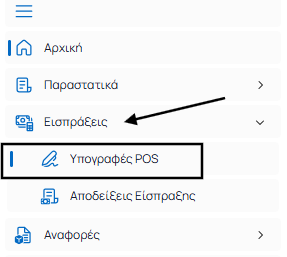 Στην ενότητα "Υπογραφές POS", προβάλλονται όλες οι υπογραφές που έχουν εκδοθεί από τον πιστοποιημένο πάροχο ηλεκτρονικής τιμολόγησης για πληρωμές μέσω POS. Κάθε υπογραφή συνοδεύεται από σχετικές πληροφορίες, όπως η ημερομηνία έκδοσης και η κατάσταση χρήσης της.