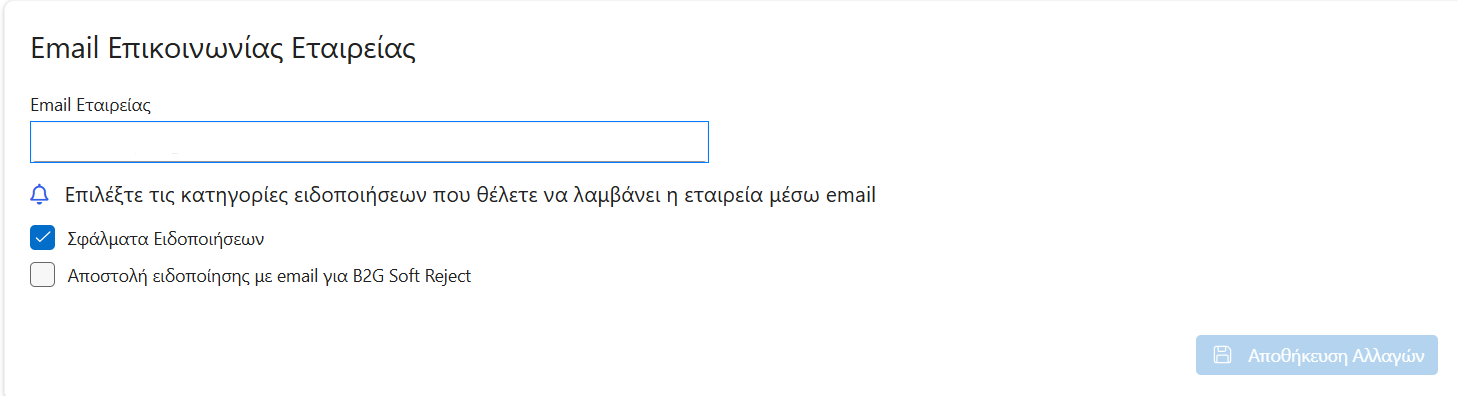 Σε περίπτωση αποτυχίας αποστολής ειδοποίησης μέσω email (π.χ. για την αποστολή ενός παραστατικού), το σύστημα αποστέλλει ενημερωτικό email στη διεύθυνση επικοινωνίας της εταιρείας. Το email αυτό παρέχει πληροφορίες σχετικά με: